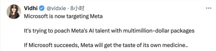 网友表示,如果微软成功撬动Meta人才,也算是小扎自食其果了。