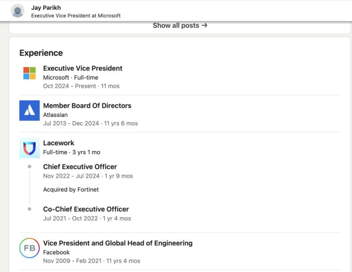 团队中有不少人都有Meta(包括Facebook时期)的工作经历,不过微软发言人确认,一些Meta高管在Parikh加入之前就已经被微软聘用。